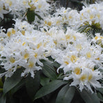 An extremely widespread and variable species that eventually forms a very large tree in its native habitats ranging from the Himalaya through China and into Malaysia and Indonesia. Some botanists have separated out several different species from throughout this huge range, whereas others have “lumped” them all into this single variable species. The trees also feature stunning smooth and peeling bark. The variable large and showy pink, lilac or white flowers are fragrant, appearing in early spring. This selection features masses of long white flowers with a yellow blotch. Very ornamental and rarely offered.