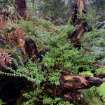 Agapetes are evergreen shrubs related to blueberries (Vaccinium spp.) but with larger and showier flowers. This is an evergreen epiphytic shrub from the cloud forests of Asia. This species is more compact in growth than many of its epiphytic relatives. Glossy and small rounded leaves along the stems for a very dense habit and appearance. This unusual species has white tubular flowers enclosed by large, rounded and showy, colorful bracts. Very distinct. This species has been hardy for us for many years in the open garden.